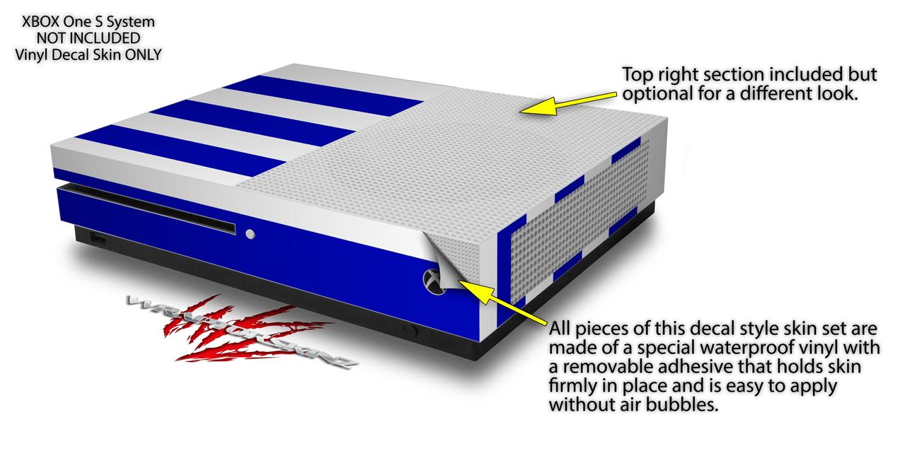 WraptorSkinz Decal Skin Wrap Set works with 2016 and newer XBOX One S Console and 2 Controllers Psycho Stripes Blue and White