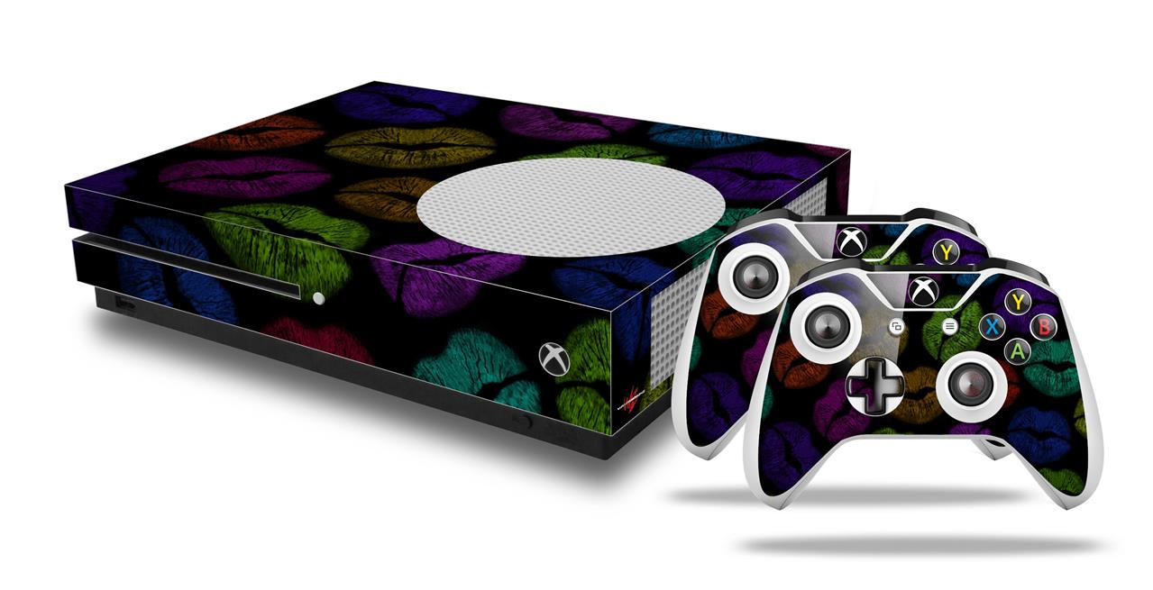 WraptorSkinz Decal Skin Wrap Set works with 2016 and newer XBOX One S Console and 2 Controllers Rainbow Lips Black