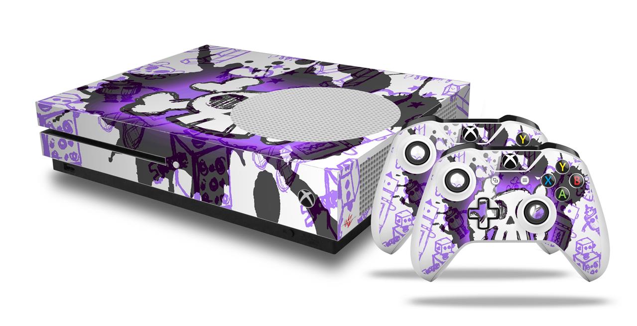 WraptorSkinz Decal Skin Wrap Set works with 2016 and newer XBOX One S Console and 2 Controllers Cartoon Skull Purple