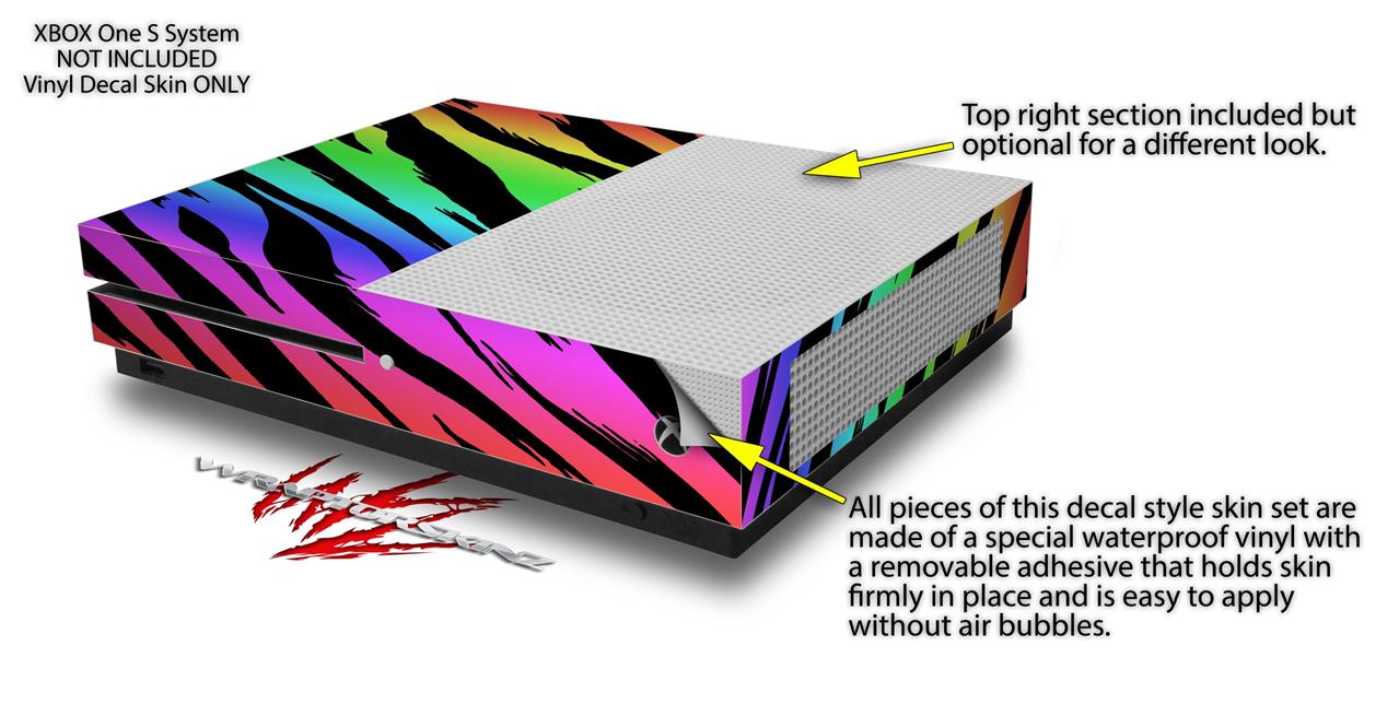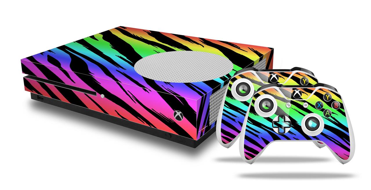 WraptorSkinz Decal Skin Wrap Set works with 2016 and newer XBOX One S Console and 2 Controllers Tiger Rainbow