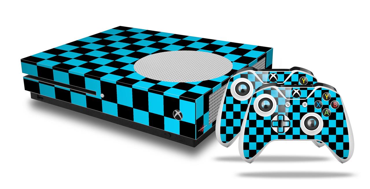 WraptorSkinz Decal Skin Wrap Set works with 2016 and newer XBOX One S Console and 2 Controllers Checkers Blue