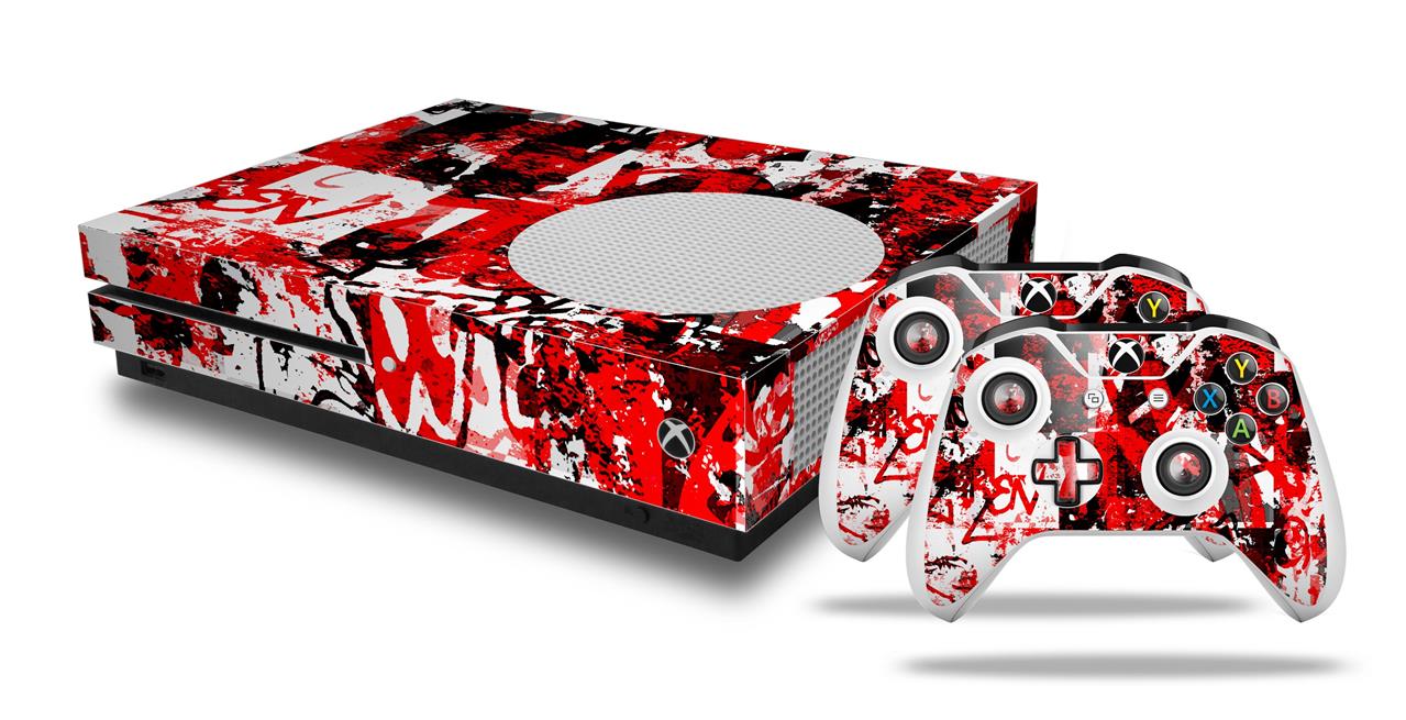 WraptorSkinz Decal Skin Wrap Set works with 2016 and newer XBOX One S Console and 2 Controllers Red Graffiti