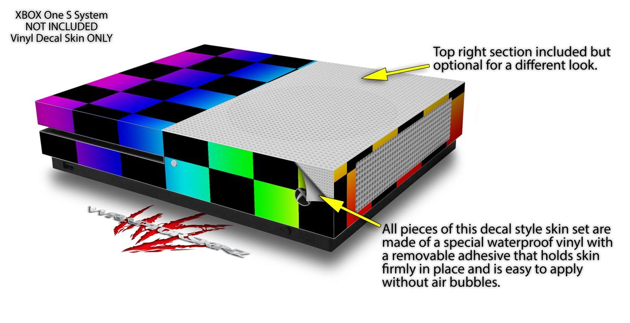 WraptorSkinz Decal Skin Wrap Set works with 2016 and newer XBOX One S Console and 2 Controllers Rainbow Checkerboard