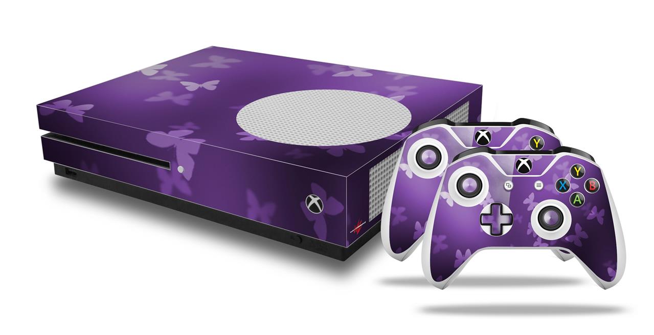 WraptorSkinz Decal Skin Wrap Set works with 2016 and newer XBOX One S Console and 2 Controllers Bokeh Butterflies Purple