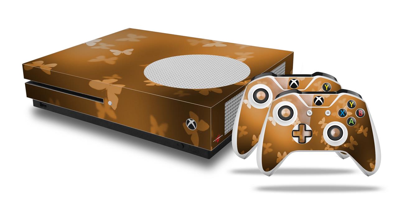 WraptorSkinz Decal Skin Wrap Set works with 2016 and newer XBOX One S Console and 2 Controllers Bokeh Butterflies Orange