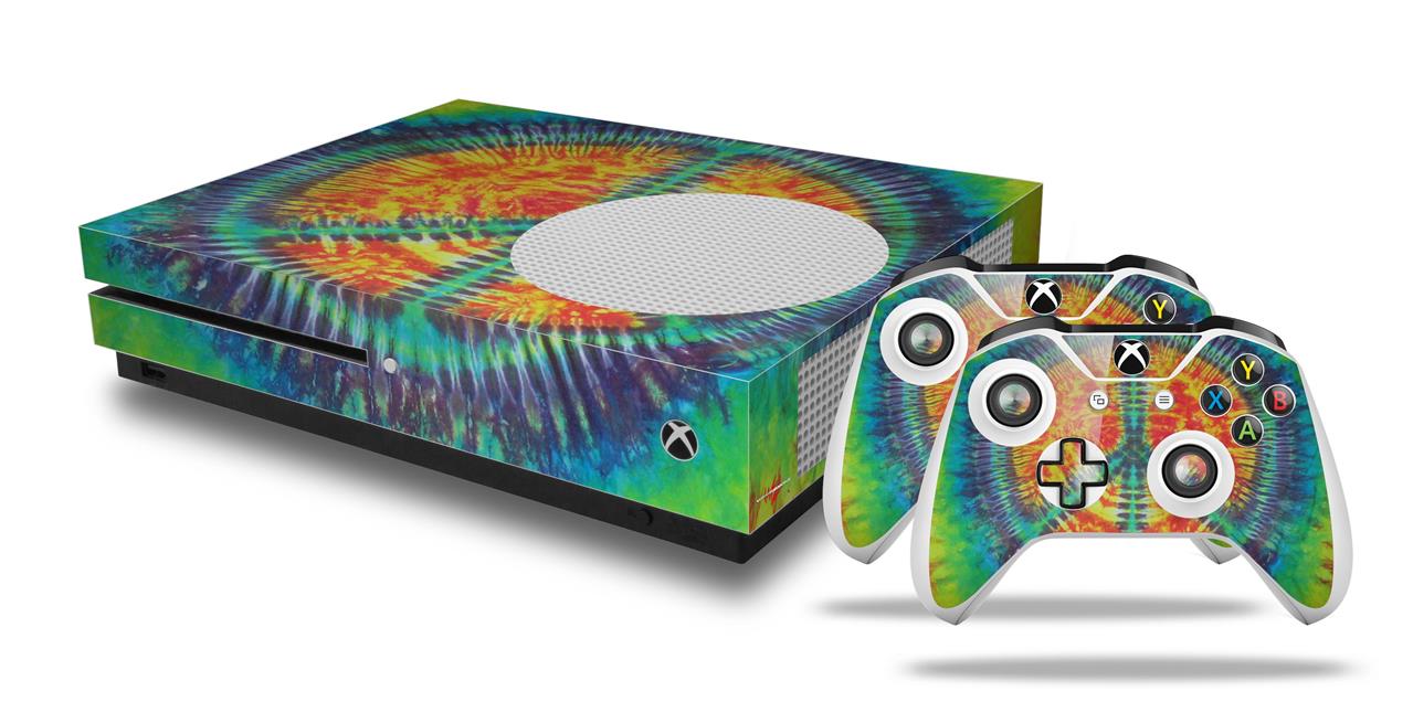 WraptorSkinz Decal Skin Wrap Set works with 2016 and newer XBOX One S Console and 2 Controllers Tie Dye Peace Sign 111