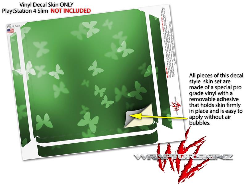 Vinyl Decal Skin Wrap compatible with Sony PlayStation 4 Slim Console Bokeh Butterflies Green (PS4 NOT INCLUDED)