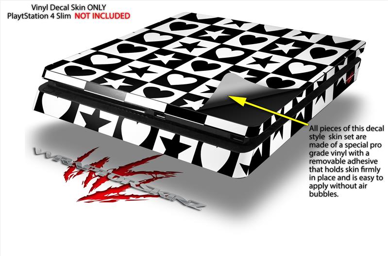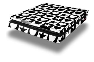 Vinyl Decal Skin Wrap compatible with Sony PlayStation 4 Slim Console Hearts And Stars Black and White (PS4 NOT INCLUDED)