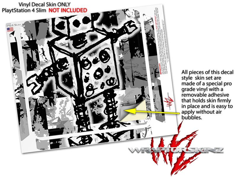 Vinyl Decal Skin Wrap compatible with Sony PlayStation 4 Slim Console Robot Sketch (PS4 NOT INCLUDED)