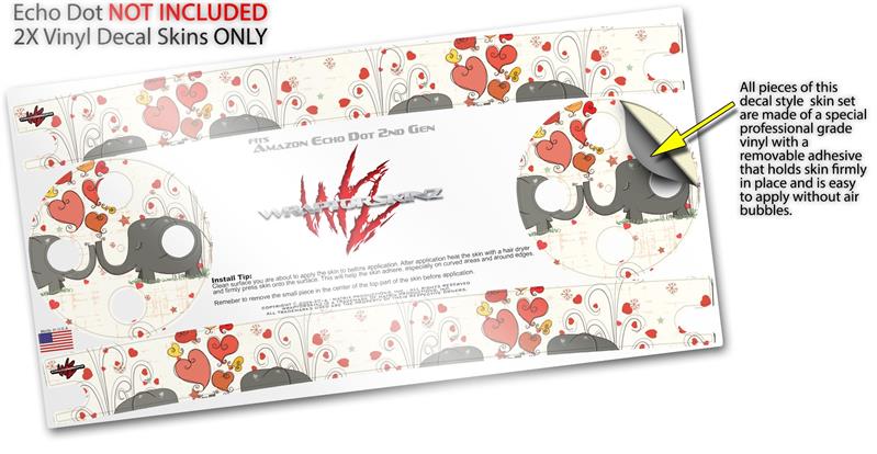 Skin Wrap Decal Set 2 Pack for Amazon Echo Dot 2 - Elephant Love (2nd Generation ONLY - Echo NOT INCLUDED)
