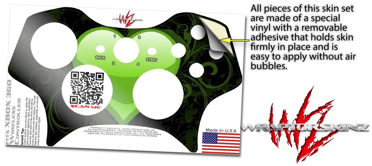 XBOX 360 Wireless Controller Decal Style Skin - Glass Heart Grunge Green (CONTROLLER NOT INCLUDED)