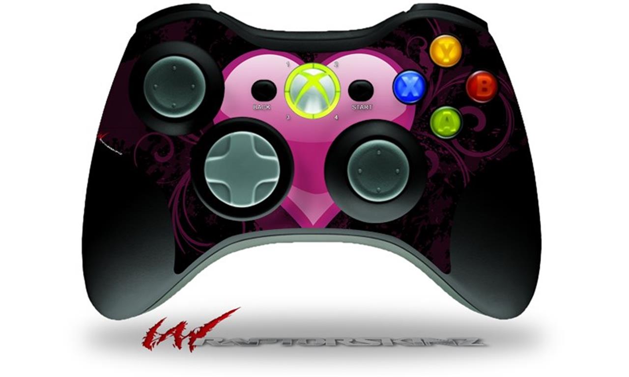 XBOX 360 Wireless Controller Decal Style Skin - Glass Heart Grunge Hot Pink (CONTROLLER NOT INCLUDED)