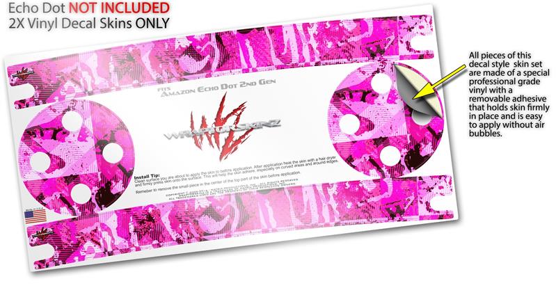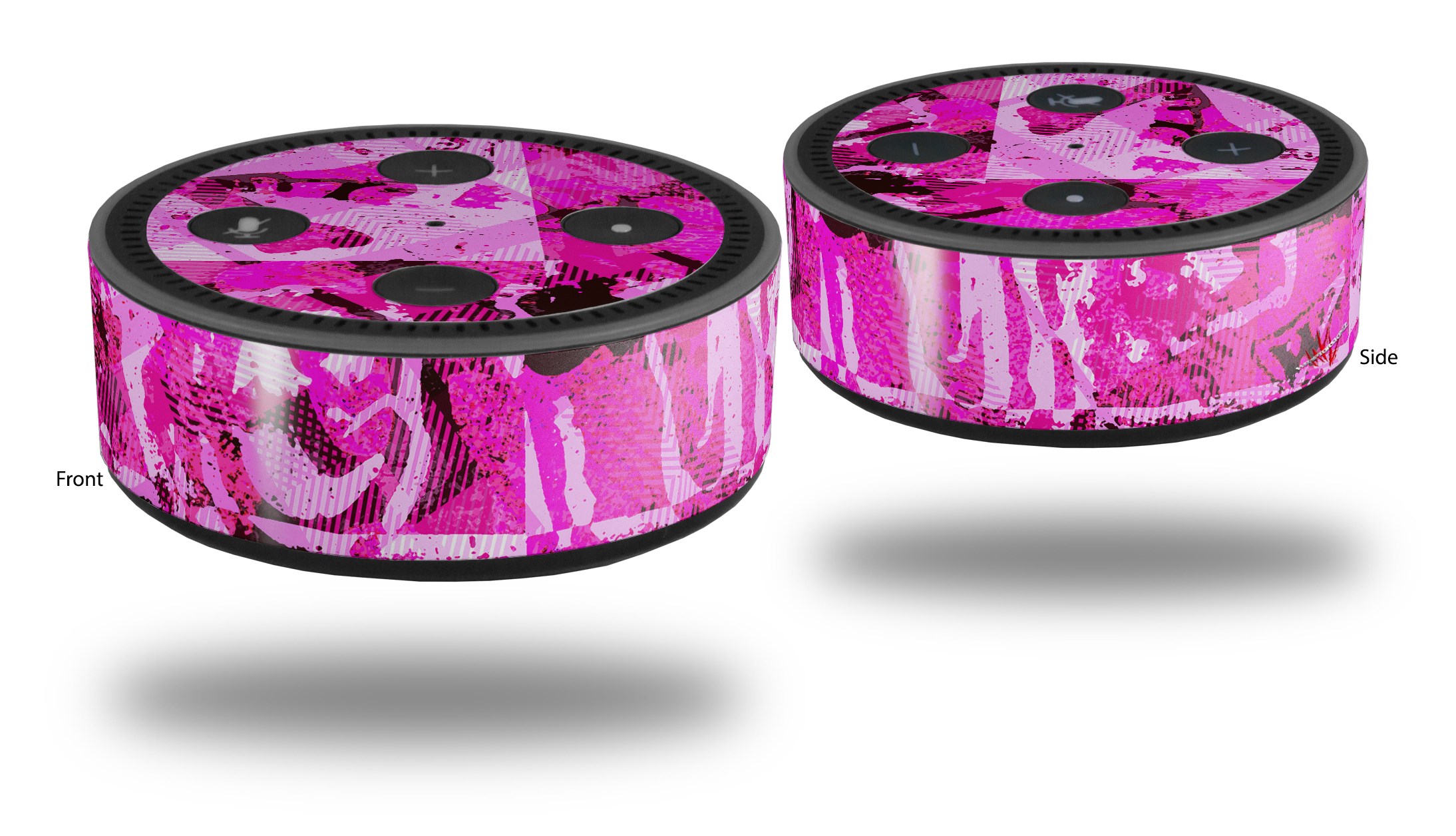Skin Wrap Decal Set 2 Pack for Amazon Echo Dot 2 - Pink Plaid Graffiti (2nd Generation ONLY - Echo NOT INCLUDED)