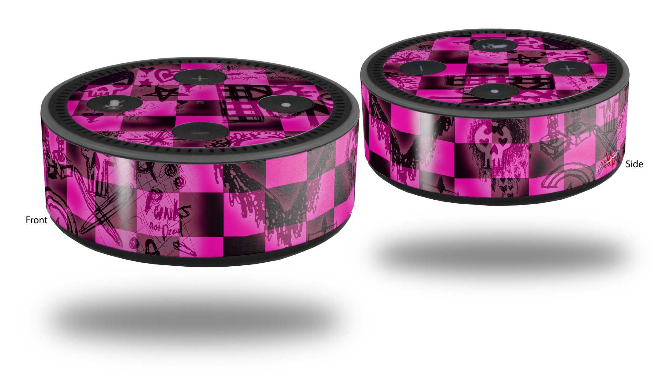 Skin Wrap Decal Set 2 Pack for Amazon Echo Dot 2 - Pink Checkerboard Sketches (2nd Generation ONLY - Echo NOT INCLUDED)