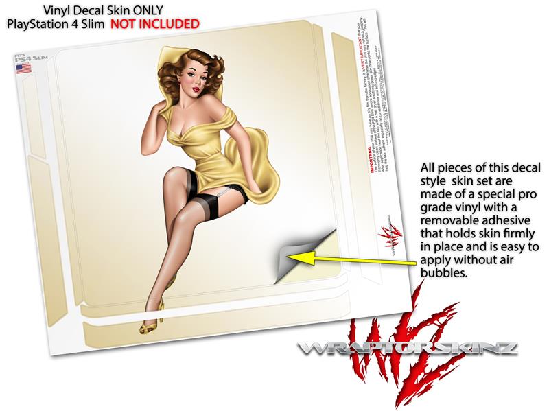 Vinyl Decal Skin Wrap compatible with Sony PlayStation 4 Slim Console Rose Pin Up Girl (PS4 NOT INCLUDED)