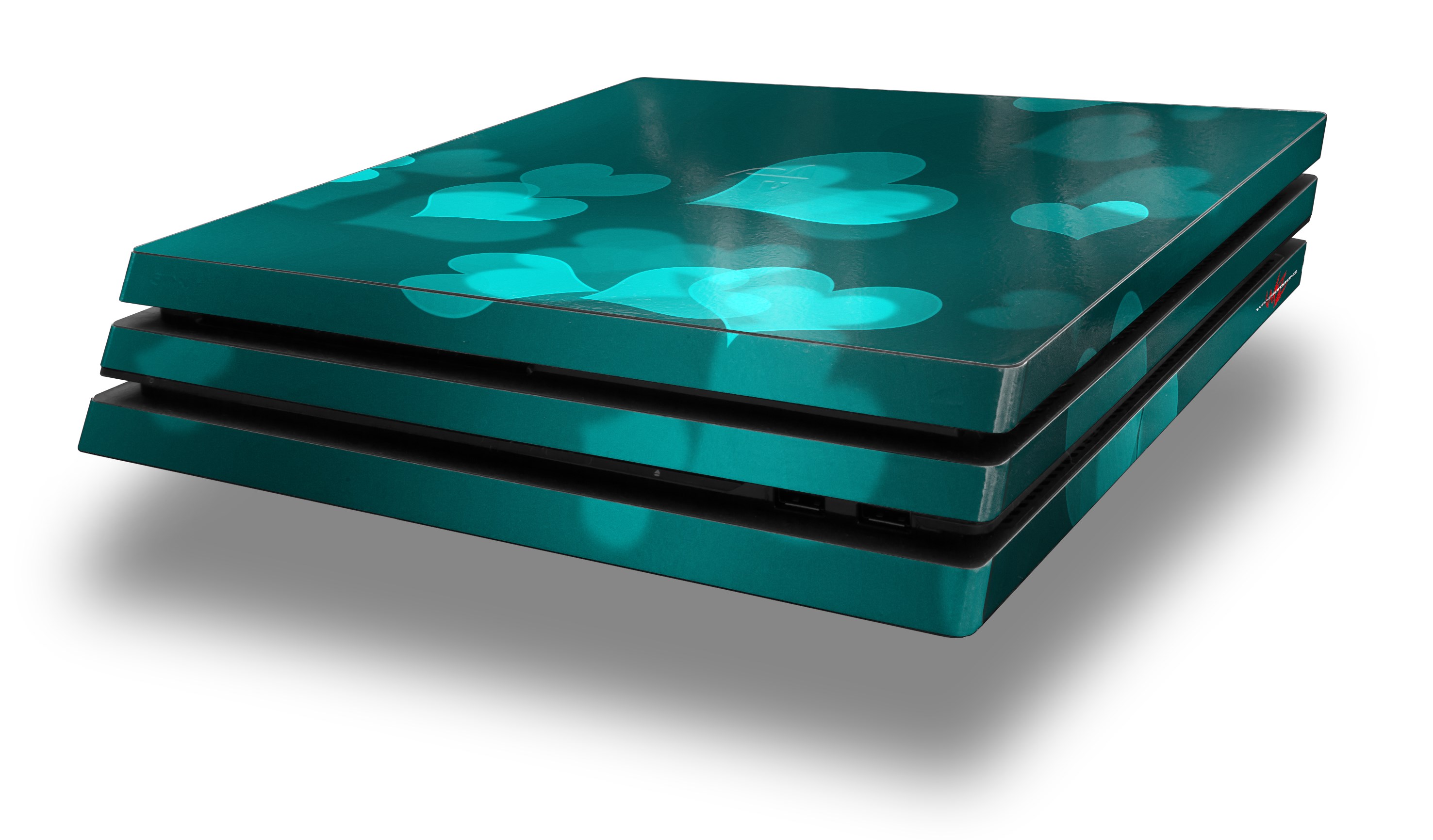 Vinyl Decal Skin Wrap compatible with Sony PlayStation 4 Pro Console Bokeh Hearts Neon Teal (PS4 NOT INCLUDED)
