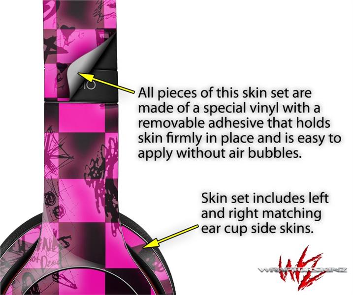 WraptorSkinz Skin Decal Wrap compatible with Beats Solo 2 and Solo 3 Wireless Headphones Pink Checkerboard Sketches (HEADPHONES NOT INCLUDED)