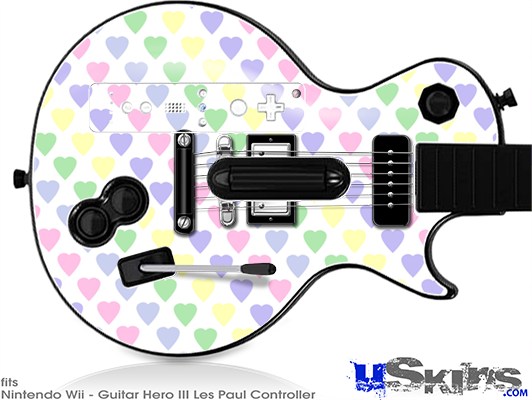 Guitar Hero III Wii Les Paul Skin - Pastel Hearts on White