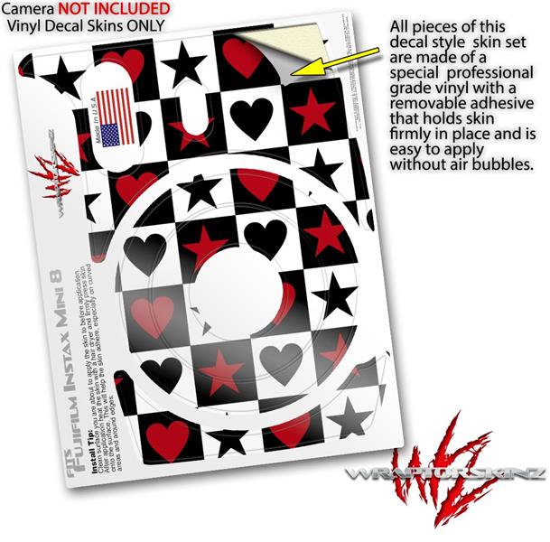 WraptorSkinz Skin Decal Wrap compatible with Fujifilm Mini 8 Camera Hearts and Stars Red (CAMERA NOT INCLUDED)