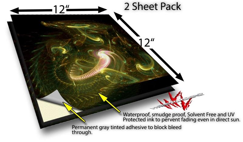 WraptoSkinz™ skin vinyl craft sheets are printed using superb photo quality designs and vibrant colors printed with special UV Protected fade resistant inks that last even in direct sun for years. Unlike other brands our inks are NOT solvent based. WraptorSkinz are a manufactured from professional grade 3mill vinyl. These sheets are waterproof, the designs will not run or smear even if submerged in water.