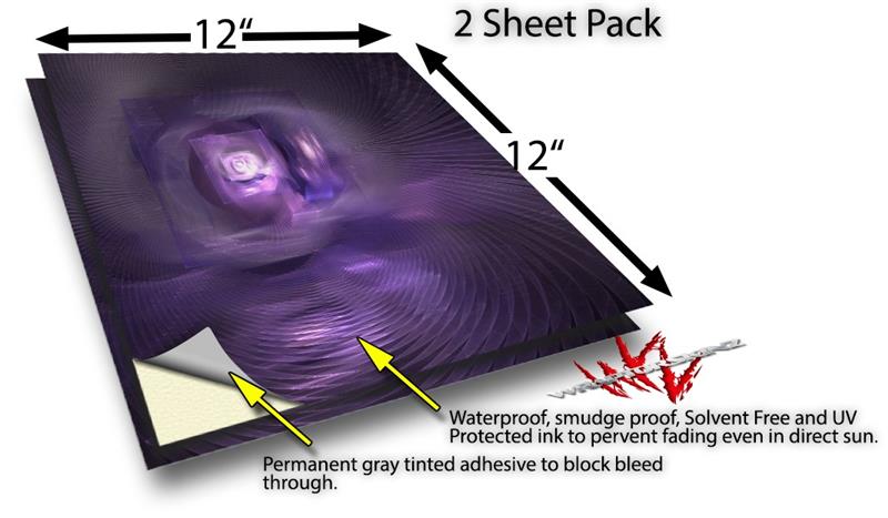 WraptoSkinz™ skin vinyl craft sheets are printed using superb photo quality designs and vibrant colors printed with special UV Protected fade resistant inks that last even in direct sun for years. Unlike other brands our inks are NOT solvent based. WraptorSkinz are a manufactured from professional grade 3mill vinyl. These sheets are waterproof, the designs will not run or smear even if submerged in water.