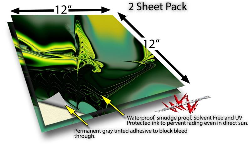 WraptoSkinz™ skin vinyl craft sheets are printed using superb photo quality designs and vibrant colors printed with special UV Protected fade resistant inks that last even in direct sun for years. Unlike other brands our inks are NOT solvent based. WraptorSkinz are a manufactured from professional grade 3mill vinyl. These sheets are waterproof, the designs will not run or smear even if submerged in water.
