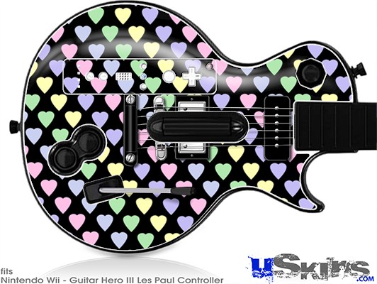 Guitar Hero III Wii Les Paul Skin - Pastel Hearts on Black