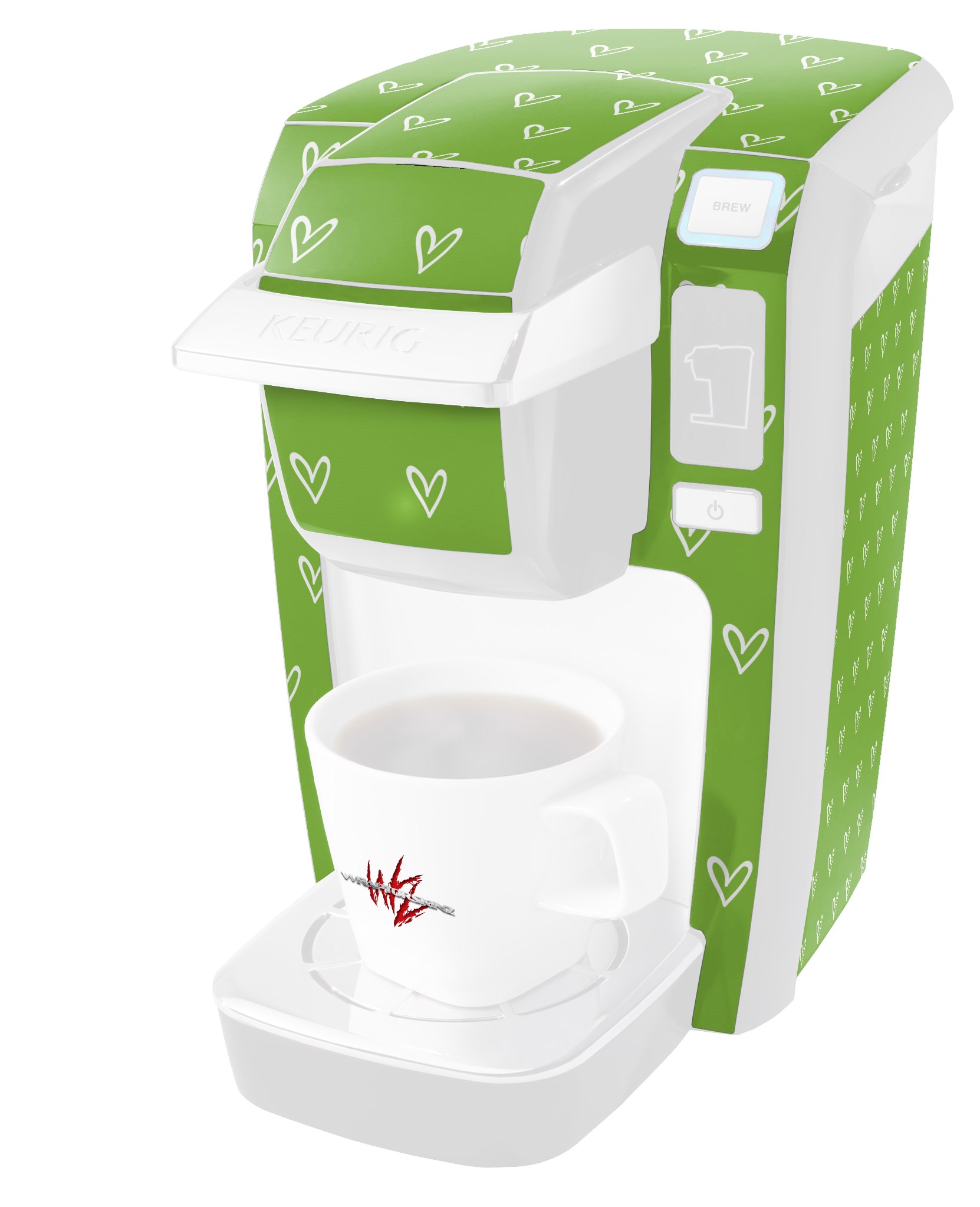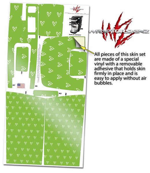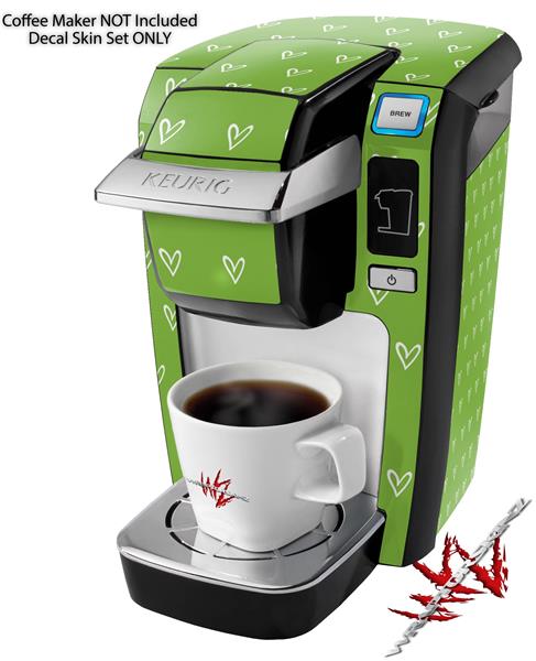 Decal Style Vinyl Skin compatible with Keurig K10 / K15 Mini Plus Coffee Makers Hearts Green On White (KEURIG NOT INCLUDED)