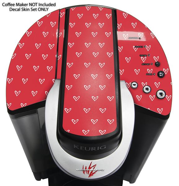 Decal Style Vinyl Skin compatible with Keurig K40 Elite Coffee Makers Hearts Red On White (KEURIG NOT INCLUDED)