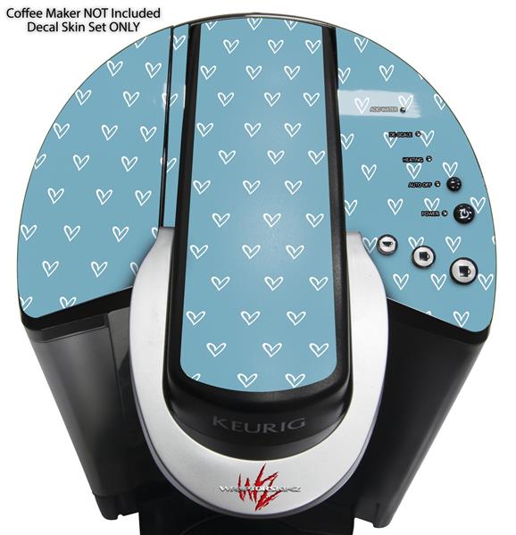 Decal Style Vinyl Skin compatible with Keurig K40 Elite Coffee Makers Hearts Blue On White (KEURIG NOT INCLUDED)