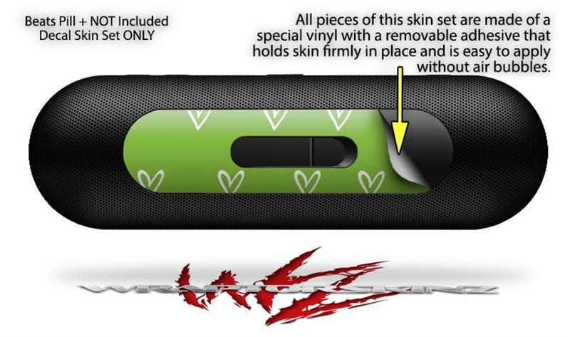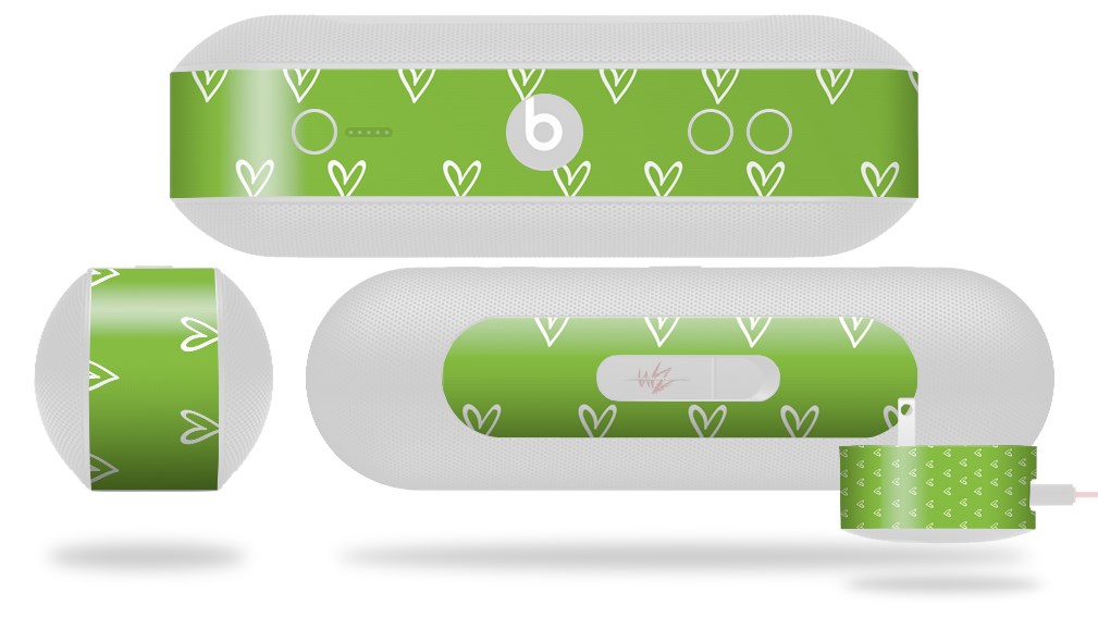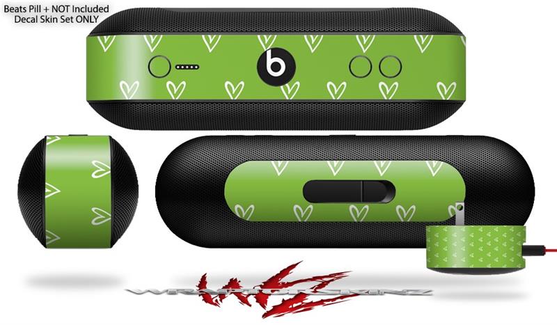 Decal Style Wrap Skin fits Beats Pill Plus Hearts Green On White (BEATS PILL NOT INCLUDED)