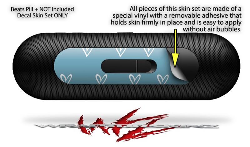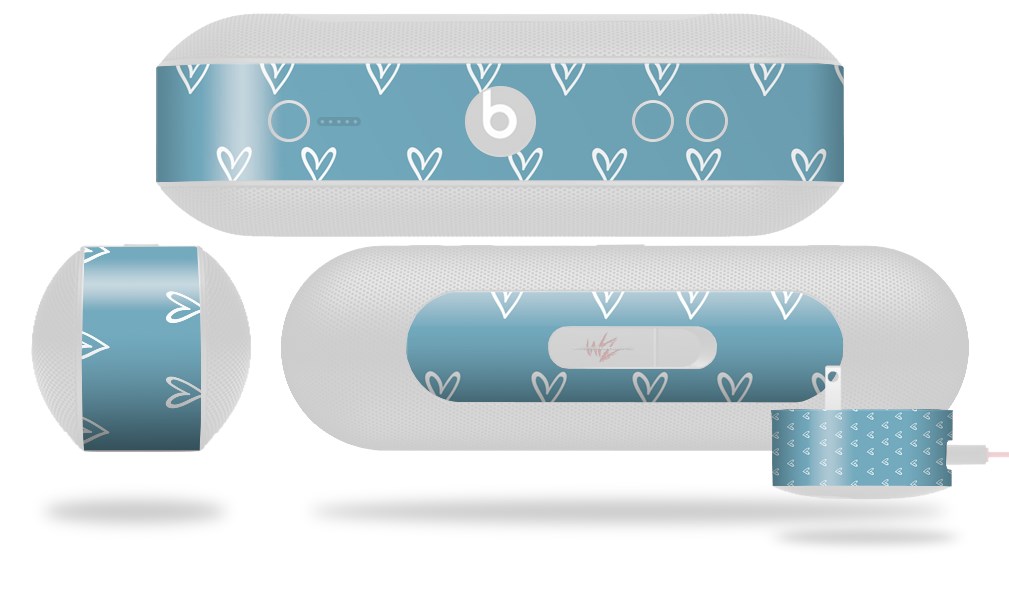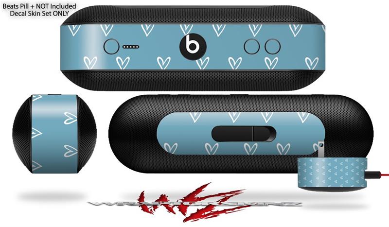 Decal Style Wrap Skin fits Beats Pill Plus Hearts Blue On White (BEATS PILL NOT INCLUDED)