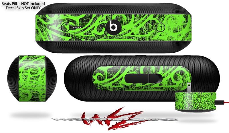 Decal Style Wrap Skin fits Beats Pill Plus Folder Doodles Neon Green (BEATS PILL NOT INCLUDED)