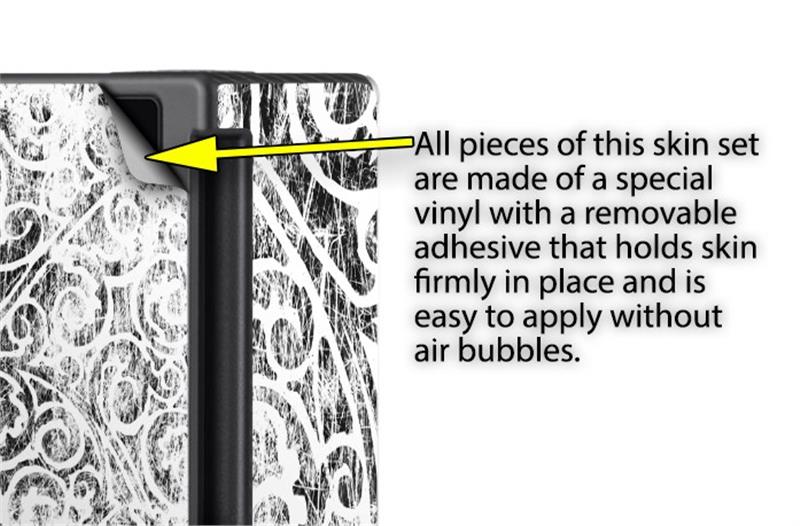 WraptoSkinz™ skins are superb photo quality designs and vibrant colors printed with special Eco-Friendly, fade resistant inks. Our skins are self-adhering flexible vinyl skins that helps prevent scratches. Made of composite, multi-layered commercial grade materials. The bottom layer is made with a special removable adhesive that is easily positioned and applied without air bubbles. We print your design on the bottom layer then bond a professional grade laminate over the entire skin adding a glossy protective finish.
