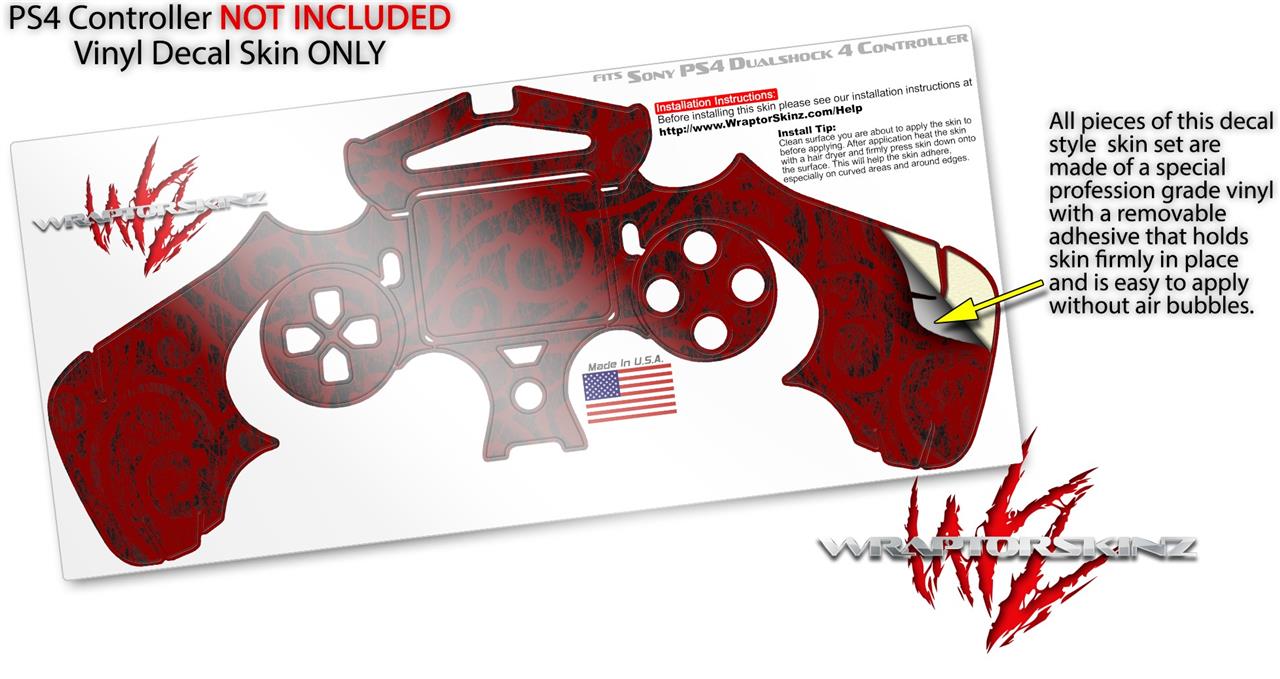 WraptorSkinz Skin compatible with Sony PS4 Dualshock Controller PlayStation 4 Original Slim and Pro Folder Doodles Red Dark (CONTROLLER NOT INCLUDED)