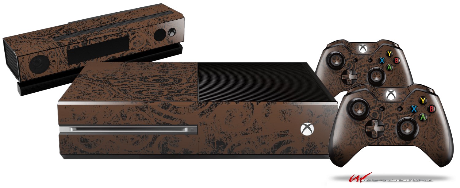 Folder Doodles Chocolate Brown - Holiday Bundle Decal Style Skin fits XBOX One Console Original, Kinect and 2 Controllers (XBOX SYSTEM NOT INCLUDED)