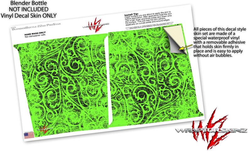 Decal Style Skin Wrap works with Blender Bottle 22oz ProStak Folder Doodles Neon Green (BOTTLE NOT INCLUDED)