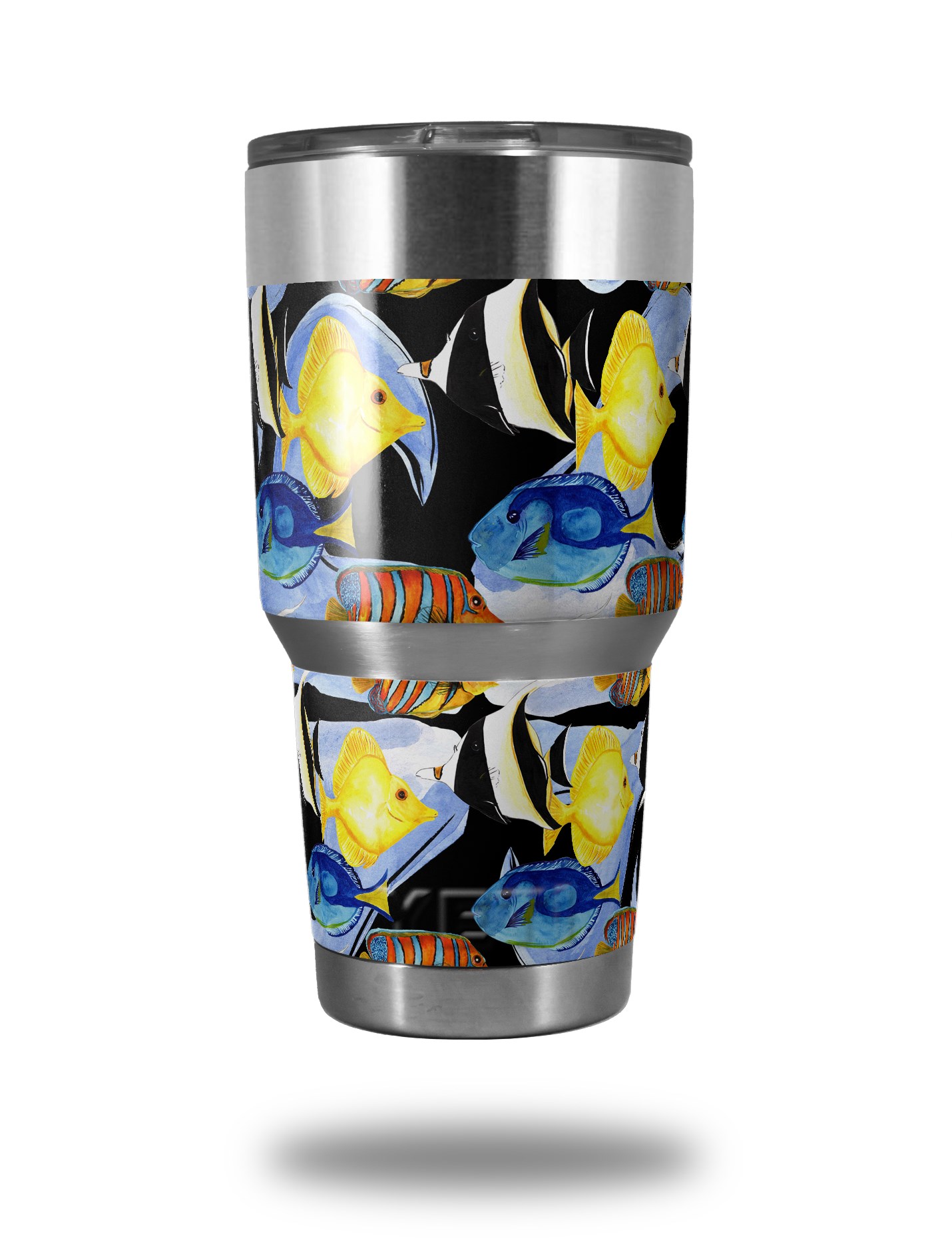 Skin Decal Wrap for Yeti Tumbler Rambler 30 oz Tropical Fish 01 Black (TUMBLER NOT INCLUDED)
