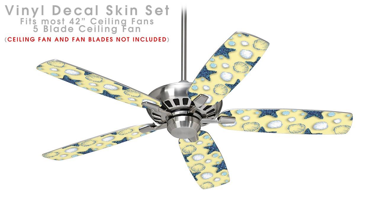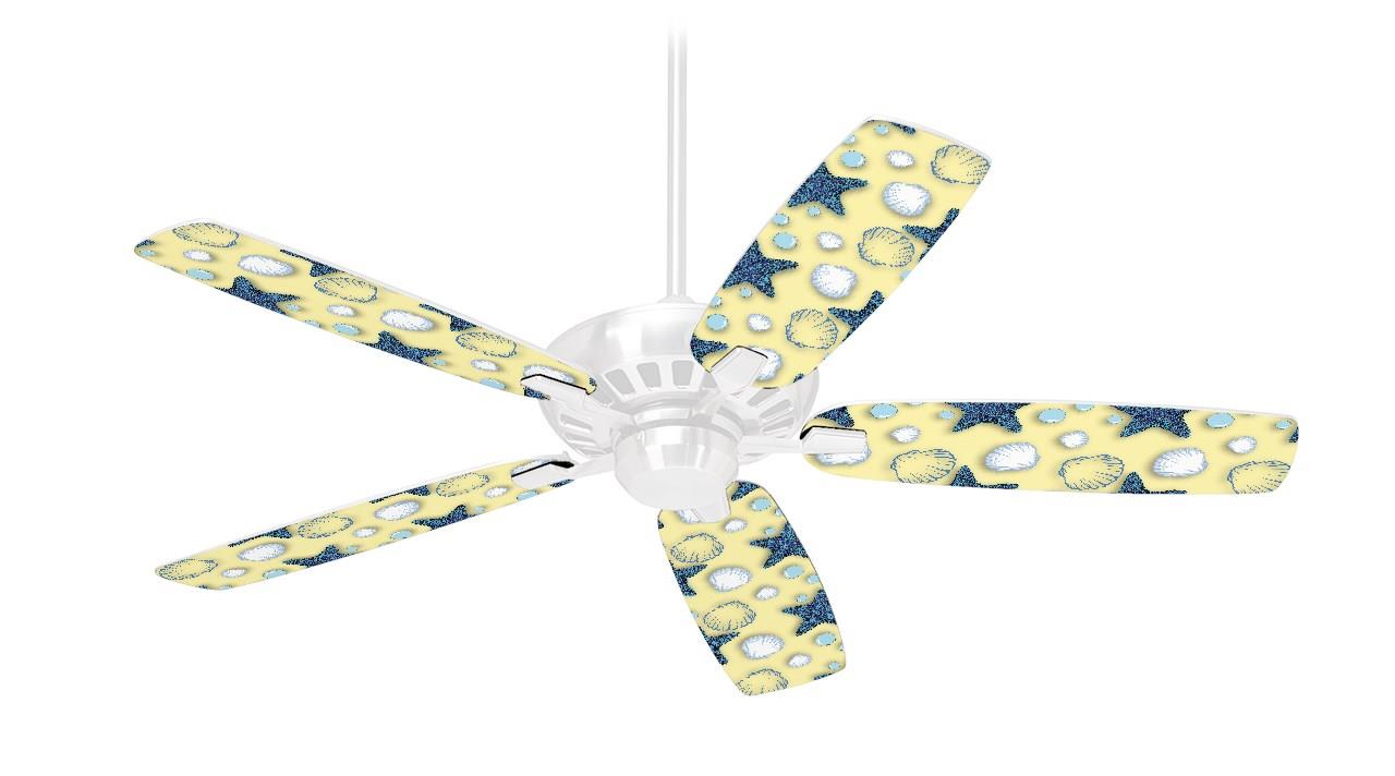Starfish and Sea Shells Yellow Sunshine - Ceiling Fan Skin Kit fits most 42 inch fans (FAN and BLADES SOLD SEPARATELY)