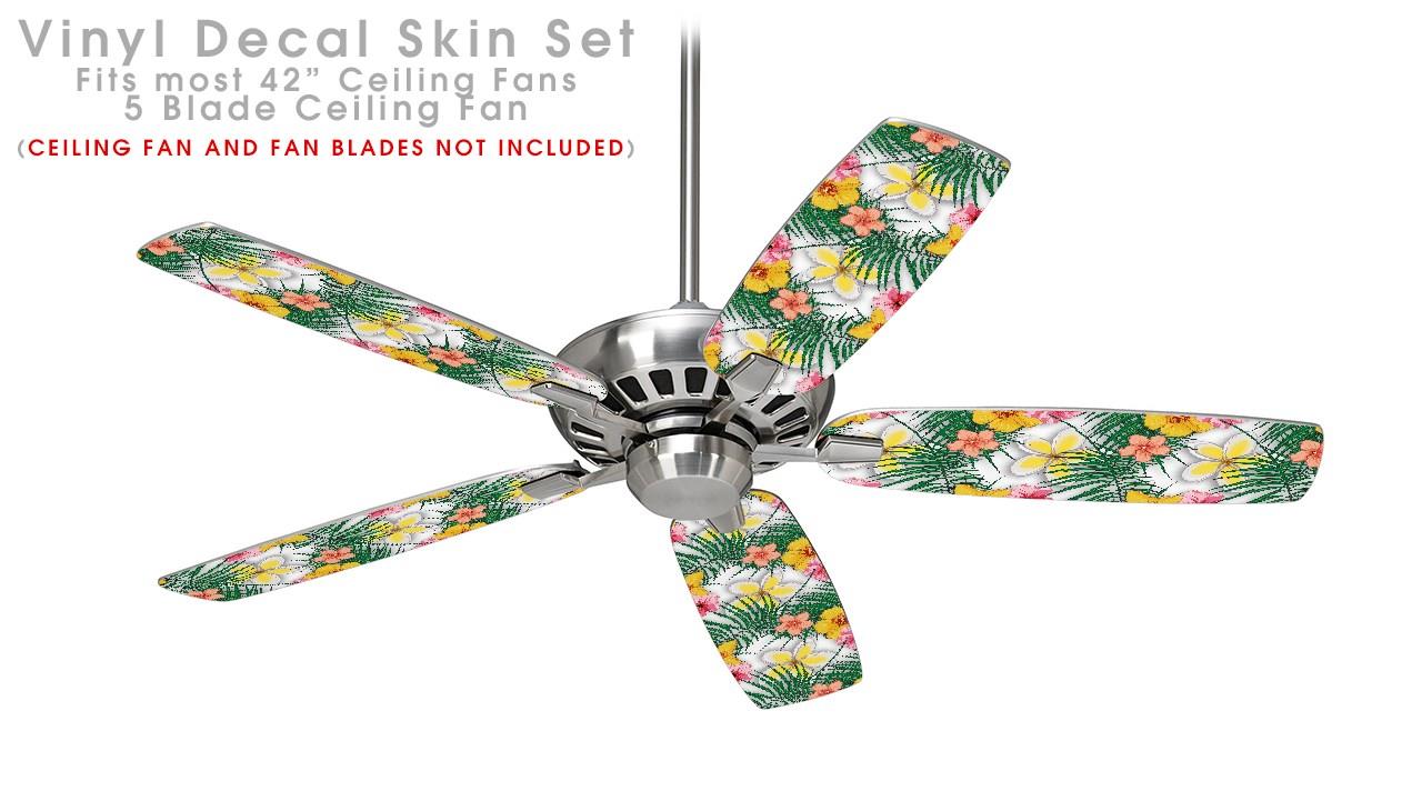 Beach Flowers 02 White - Ceiling Fan Skin Kit fits most 42 inch fans (FAN and BLADES SOLD SEPARATELY)