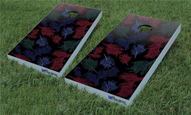 Cornhole Game Board Vinyl Skin Wrap Kit - Floating Coral Black fits 24x48 game boards (GAMEBOARDS NOT INCLUDED)