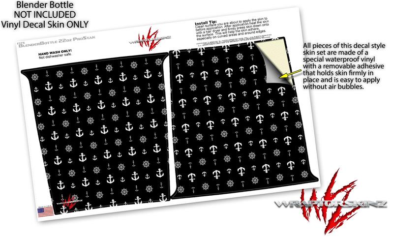 Decal Style Skin Wrap works with Blender Bottle 22oz ProStak Nautical Anchors Away 02 Black (BOTTLE NOT INCLUDED)