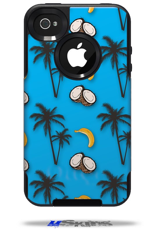 Coconuts Palm Trees and Bananas Blue Medium - Decal Style Vinyl Skin fits Otterbox Commuter iPhone4/4s Case (CASE SOLD SEPARATELY)