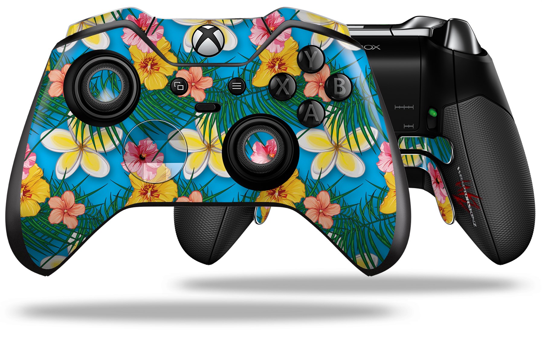 Beach Flowers 02 Blue Medium - Decal Style Skin fits Microsoft XBOX One ELITE Wireless Controller
