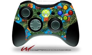 XBOX 360 Wireless Controller Decal Style Skin - Famingos and Flowers Blue Medium (CONTROLLER NOT INCLUDED)