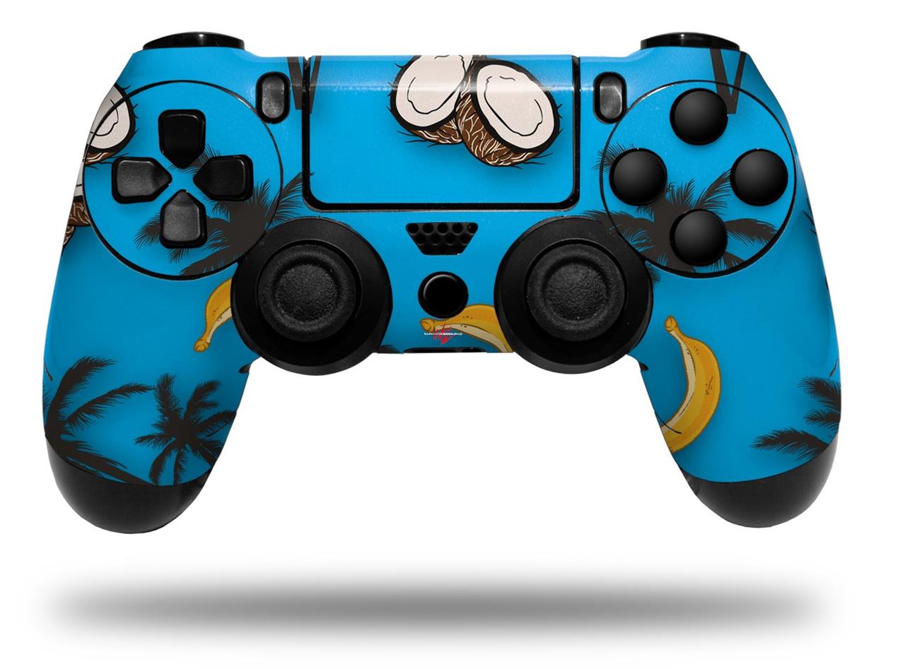 WraptorSkinz Skin compatible with Sony PS4 Dualshock Controller PlayStation 4 Original Slim and Pro Coconuts Palm Trees and Bananas Blue Medium (CONTROLLER NOT INCLUDED)