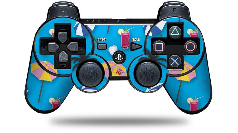 Sony PS3 Controller Decal Style Skin - Beach Party Umbrellas Blue Medium (CONTROLLER NOT INCLUDED)