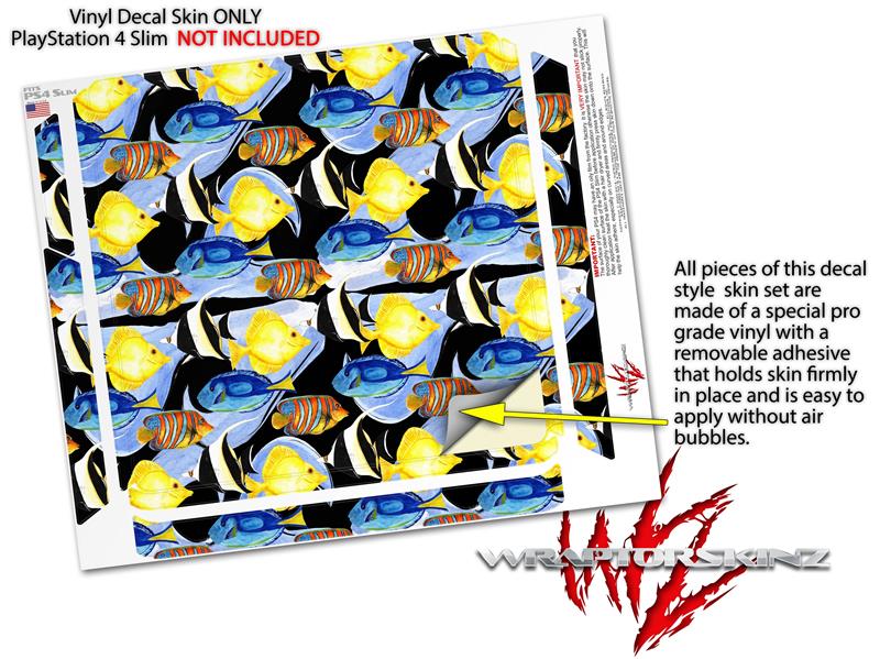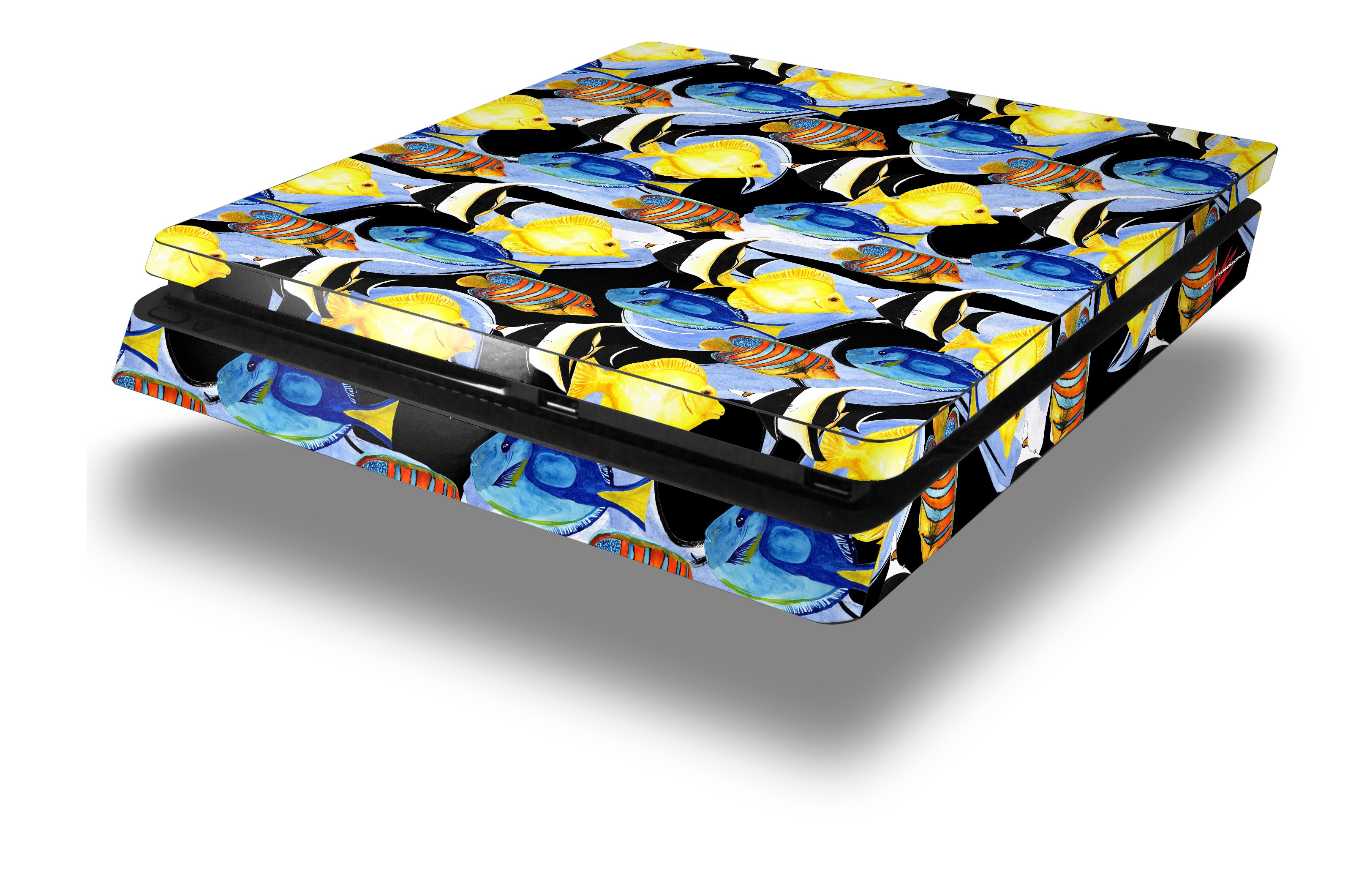 Vinyl Decal Skin Wrap compatible with Sony PlayStation 4 Slim Console Tropical Fish 01 Black (PS4 NOT INCLUDED)