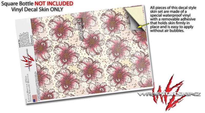 Skin Decal Wrap for Clean Bottle Square Titan Plastic 25oz Flowers Pattern 23 (BOTTLE NOT INCLUDED)