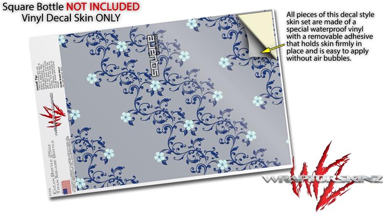 Skin Decal Wrap for Clean Bottle Square Titan Plastic 25oz Victorian Design Blue (BOTTLE NOT INCLUDED)